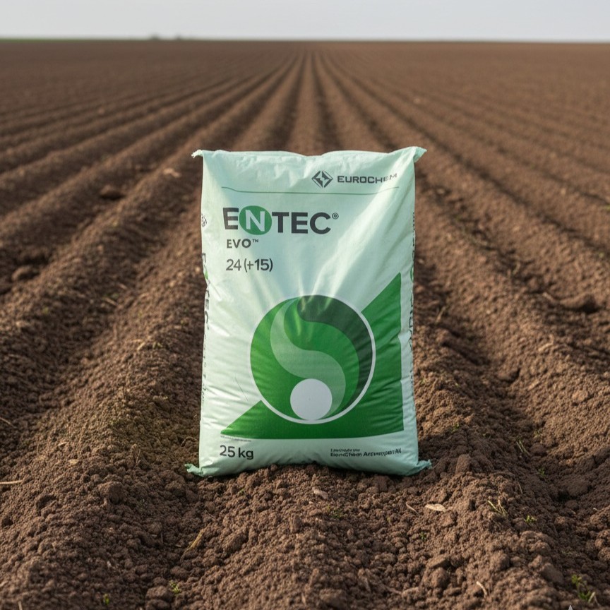 ENTEC® EVO 24 (+15) es un fertilizante nitrogenado de alta eficiencia diseñado para aportar nitrógeno de forma progresiva y estable. Gracias a la tecnología ENTEC®, reduce las pérdidas por volatilización y lixiviación, asegurando que el cultivo aproveche mejor el nutriente durante más tiempo.